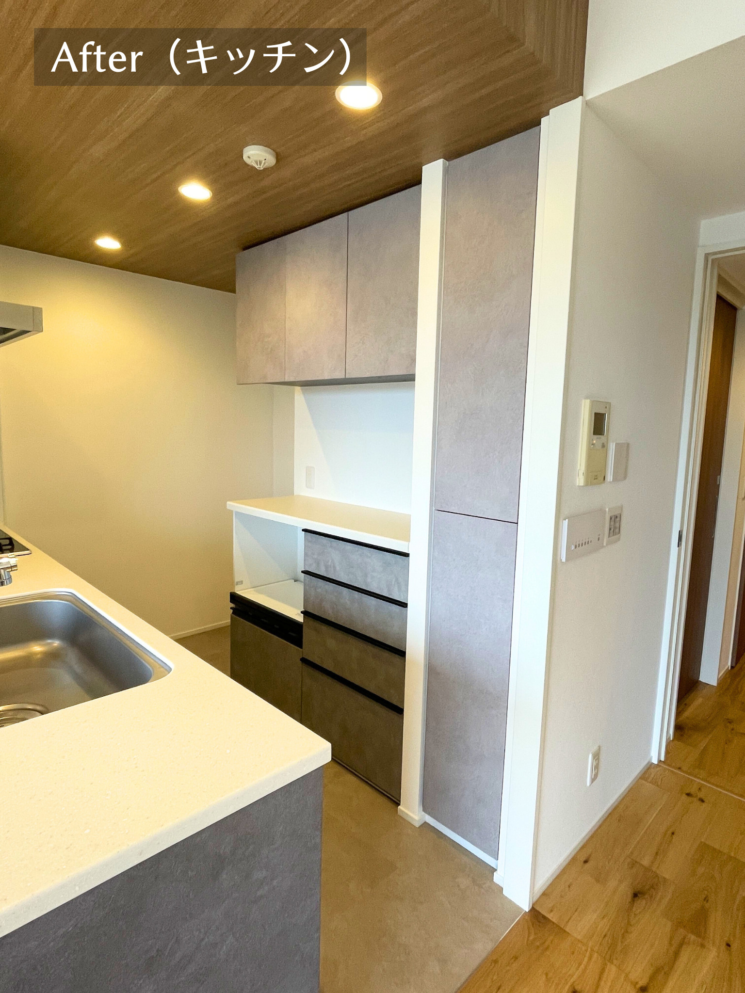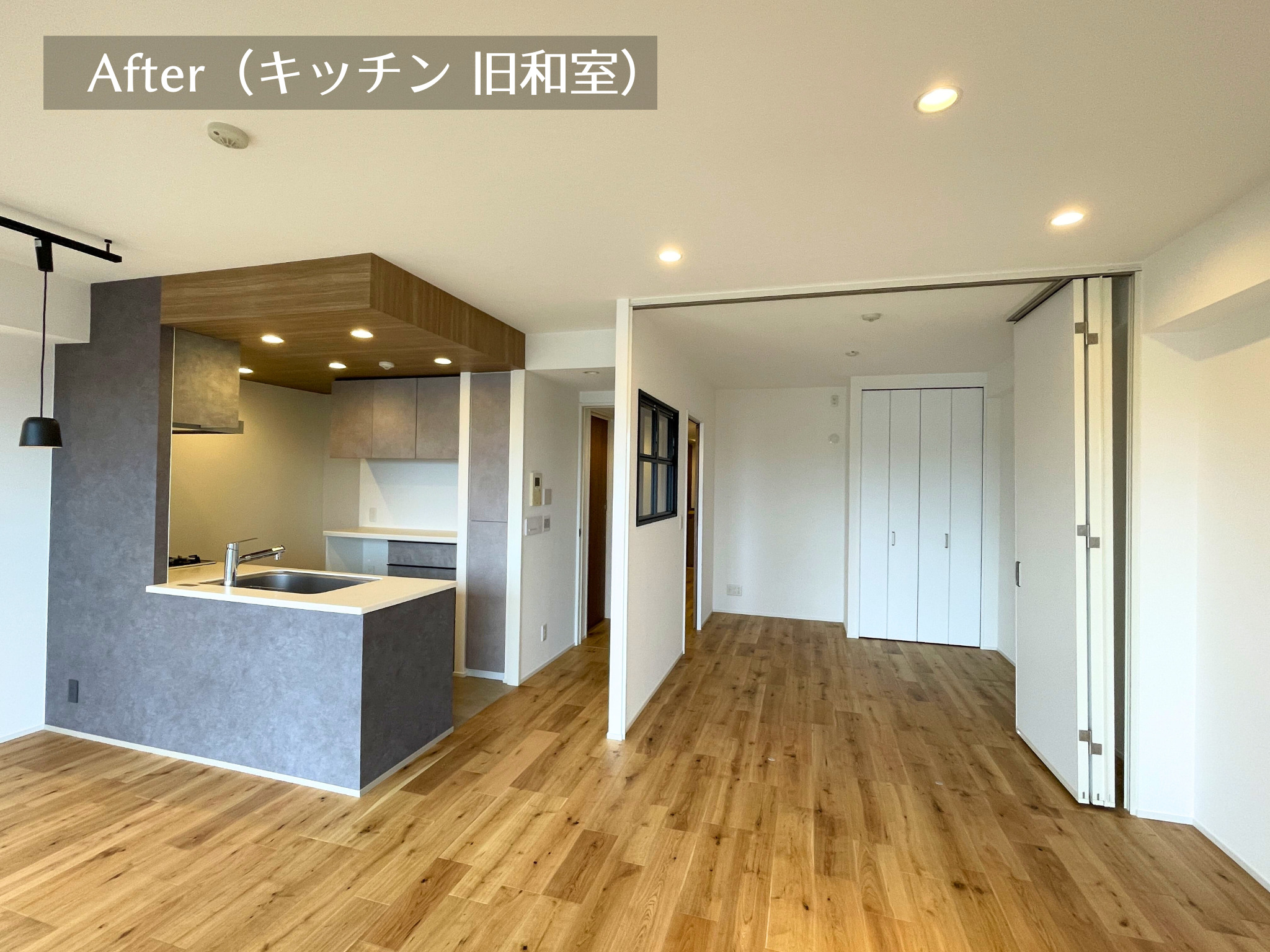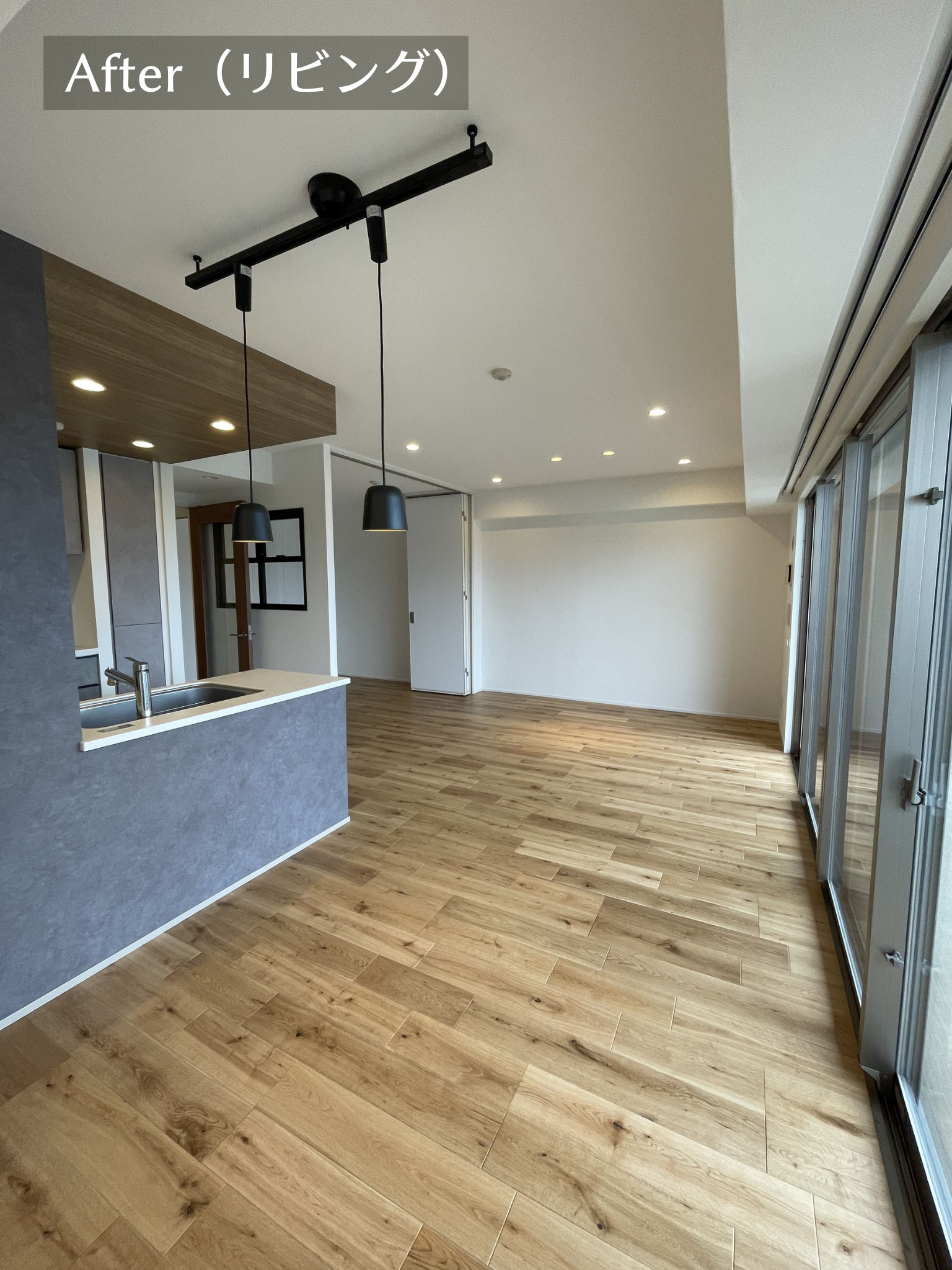 | 施工箇所 | 間取り変更(和室をリビングとつなげて、将来は子供部屋に)ダウンライト工事(ライトコントローラー)フローリング張替え・内装工事・食器洗浄機新設・カップボード・キッチン扉シート張り・キッチン吊戸棚新設・ガラスフィルム・ハンキングバー・トイレにカウンタ― | ご要望 | ・リビング隣の和室をリビングとつなげて洋室にしたい。将来は子供部屋に ・押し入れを洋室2部屋それぞれのクローゼットにしたい ・ダウンライトをLDに入れたい(寝室にも入れたい) ・食器洗浄機フロントオープンタイプを入れたい ・理想のインテリアイメージになるクロスを選びたい。フローリングにこだわりたい ・リビングの窓にガラスフィルムを張りたい ・リビングドアのガラスが透明で玄関から丸見えなので、目隠ししたい ・ハンキングバーを付けたい ・トイレにカウンタ―を取付たい ・巾木の高さを低いものにしたい ・キッチンにカップボード・家電収納を設置したい。 ・キッチンの扉の色を変えたい ・キッチンはフローリングではなくて水に強くて掃除しやすい材料に変えたい。 |